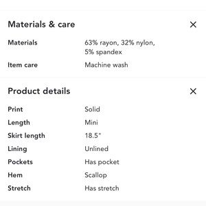 Materials: 63% rayon, 32% nylon, 5% spandex