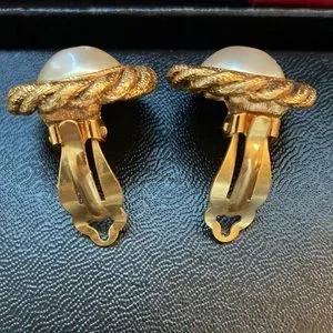 Authentic Chanel Vintage Faux Pearl Clip On Earrings