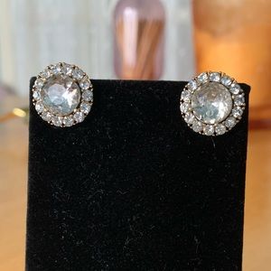 Beautiful J Crew crystal stud earrings surrounded by stunning halo of micropavé crystals, with post-back for pierced ears