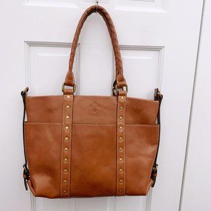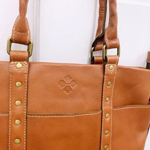 Patricia Nash Tan Carducci Heritage Collection Tote Bag with Bush Metal Hardware