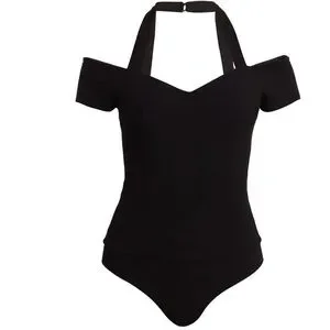 PAIGE *Anemone* black stretch ribbed halter bodysuit XS