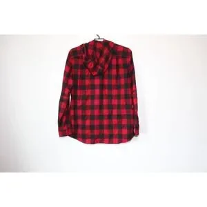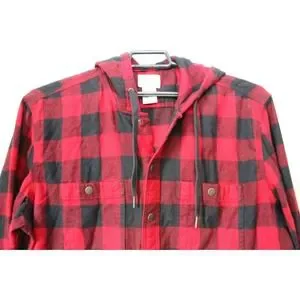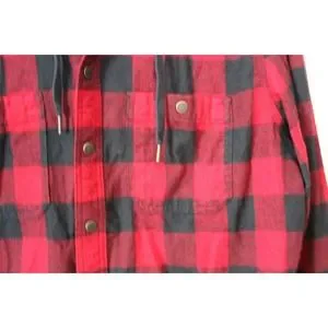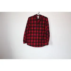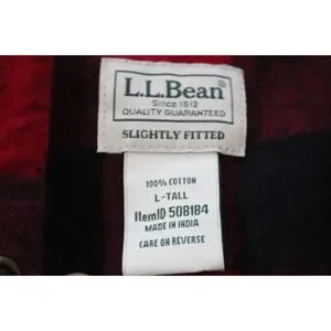 L.L. Bean Men's Scotch Plaid Flannel Hooded Shirt Tartan Red Large Tall H13844