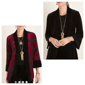Chico's Travelers Collection Reversible Black To Red Velvet Jacket 1 8/10 H13887