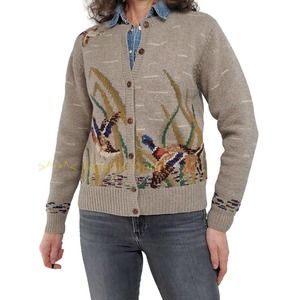 Lauren Ralph Lauren Lambswool Cardigan Hand Knit Mallard Duck Hunting M H13900