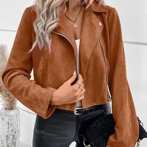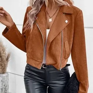 Luxe Vegan Suede Zipper Biker Moto Jacket Coat