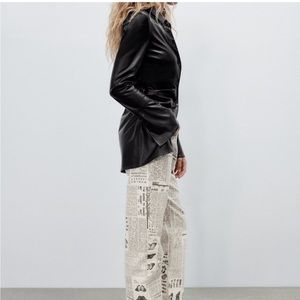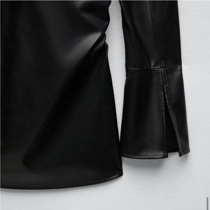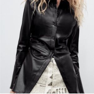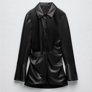 Overshirt with lapel collar and long cuffed sleeves. Ruching detail at sides. Front button closure.