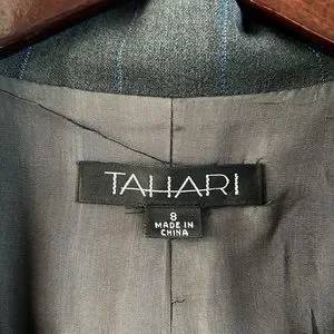 Tahari blue gray pinstriped business jacket size 8