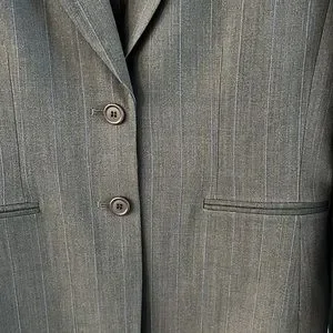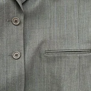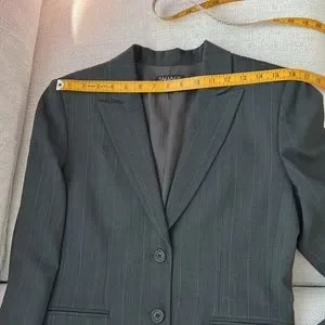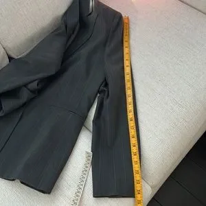 Fully lined this beautiful pin stripped jacket long sleeves with buttons. Never used. Two front pocket still stitched together. Check all pictures carefully for measurements and condition. From a home free of smoke or pets.
