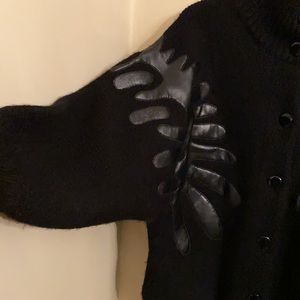 (Like new) Vintage oversized 90s Sweater Coat with Black pleather appliqué