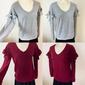 ALMOST FAMOUS 2 SWEATERS |set of 2 v-neck open arm fancy shoulder tie CR…