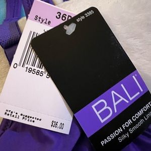 Pretty purple Bali bra with underwire. Size 36D, never worn & with a subtle pattern. It fastens in the back.