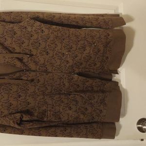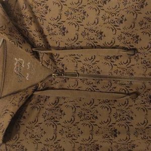 2-Way Zipper Hoodie/ Sweatshirt with Tie-back, Brown Scroll Pattern