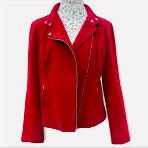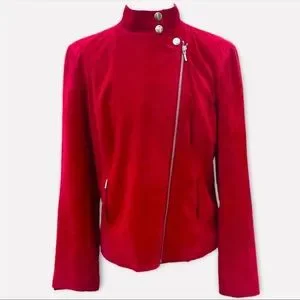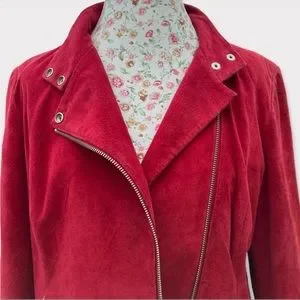 Alfani 100% leather red suede jacket with zippers and snaps, 2 zippered pockets