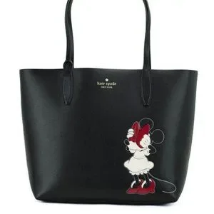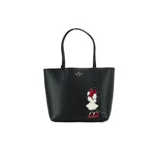Kate Spade X Disney Minnie Mouse Tote - Features: Reversible, Removable Pouch, Lightweight, Color Black Multi, Material: Refined Grain Leather