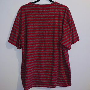 In great condition, only flaw is the 2 small holes on the front (shown in the last picture above). Size X-Large in mens. Red/Gray color way with black lettering on the chest.
