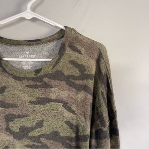 Aero soft & sexy plush top long sleeve camo print green sz L