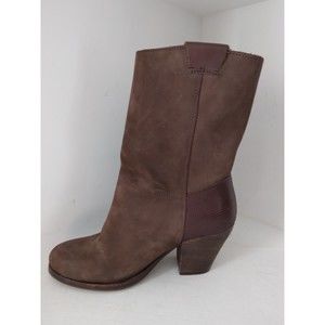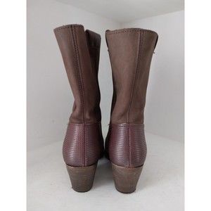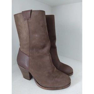 KSUBI Boots Heeled Brown Leather Womens Size 37 US 7 Made in Portugal. Heel height measures approximately 2 3/3".