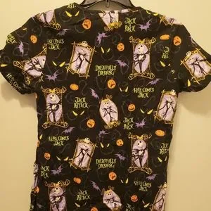 Lot Of 2 Halloween Womens Scrubs Size Small Nightmare Before Christmas & Ghosts.