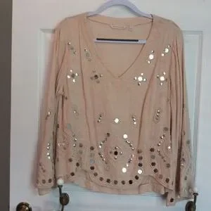 Tan blouse with sparkles sewn in!! V-neck..dress up or wear with jeans..cute cute blouse...never worn..