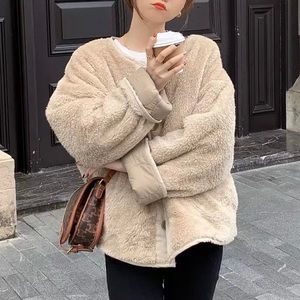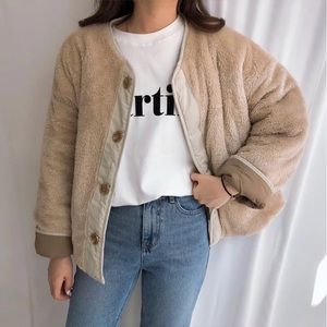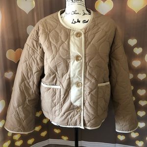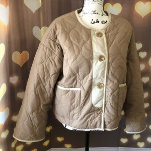 Coat jacket reversible cozy khaki beige tan pocket quilted puffer pocket women