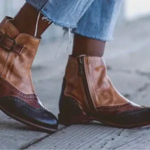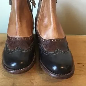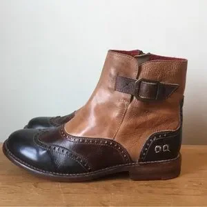 Size 7 ODESSA Bed Stu wingtip, brogue details and antique brass octagon ankle buckle. An inside zip makes getting in these boots a breeze, while the hand finishing creates a truly unique and nostalgic appeal.