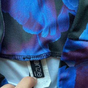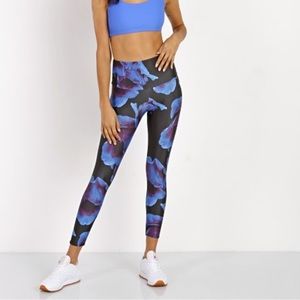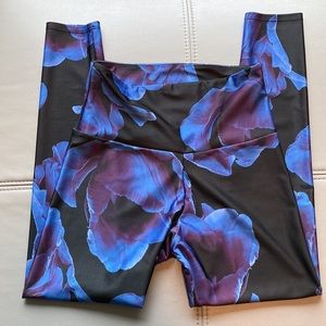 Beautiful floral print leggings. Blue and purple floral hues with black background. In excellent condition. 25” inseam. Perfect for Yoga, pilates, barre, cycling.