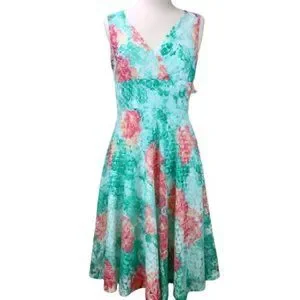Sandra Darren Dress Floral Eyelet Overlay New