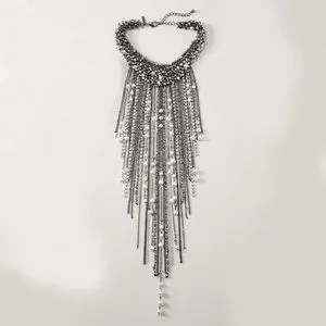 Clasp this work of art around your neck for a showstopping statement piece. The crystal and pearl waterfall will cover your chest and add some shine. Keep your clothes simple so this is on full display.