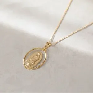 Beautiful Virgin Mary necklace. Larger size pendant on a dainty and delicate chain, wear alone or layered. New in gift box. I handpick my materials locally here in New York.