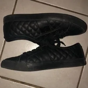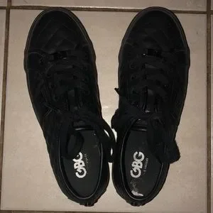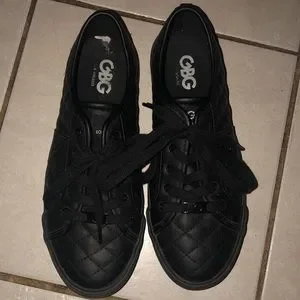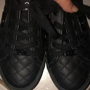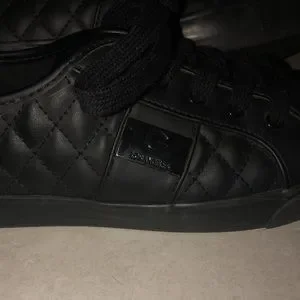 EUC REPOSH BLACK GUESS SNEAKERS THEY ARE IN EXCELLENT SHAPE HONESTLY THEY LOOK BRAND NEW UNFORTUNATELY THEY ARE AN 8.5 SO THEY ARE TOO BIG FOR MY DAUGHTER & I SEE PICS FOR DETAILS