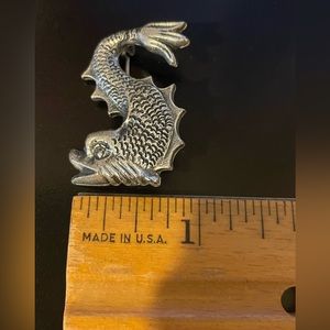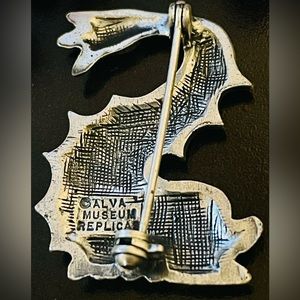 Vintage Alva Museum Replicas-Nordic Silver Dolphin Brooch. Rare find! Vintage- circa 1970’s. Estate piece- Very good condition. This brooch is signed on back “Alva Museum Replicas” Approximate dimensions: 1 3/8 inches in length x 1 inch wide.