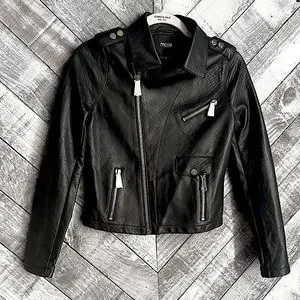 MAJE NWT Women’s Black Leather Jacket.Size 36 (4)