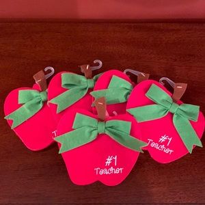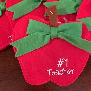 5 teacher gift card holders. Insert any gift card for the perfect teachers gift for any occasion, holiday or special event. Felt apple shape with #1 teacher written on it.