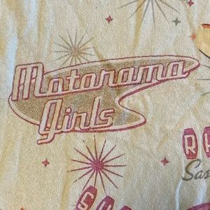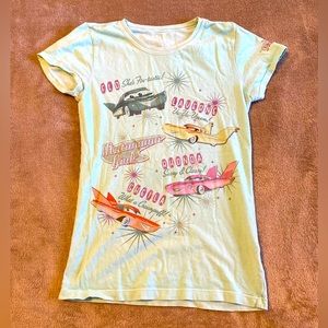 Purchased at Disney Parks CA Adventure/Cars land - pastel aqua color. Motorama Girls logo Youth Large sized tee. 100% preshrunk cotton. Cars Land logo on sleeve. Super cute !!! Washed and loved several times. In overall good condition with no stains.