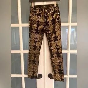 Velvet Stamped Gold Baroque print jeans, 7 For All Mankind