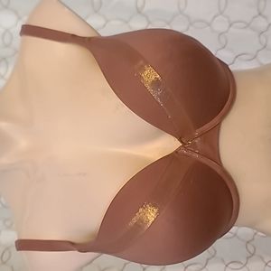 Brown Bra with metallic stripe. Adjustable straps and underwires. Shows some wear.