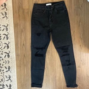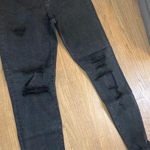 Never worn, button, fly, distressed on the front, clean, hem. Approx a 29” inseam.