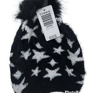 Torrid Star Beanie with Faux Pom Black/White NWT.