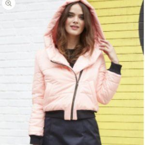 Waist length with ribbing, the Jess Coat Apricot by Vaute Couture features a sweet hoodie that overlaps in front, pockets to keep your mitts warm and a streamlined silhouette - no looking like the Michelin or Marshmallow Man! Pairs beautifully with jeans, leggings or a mini!
