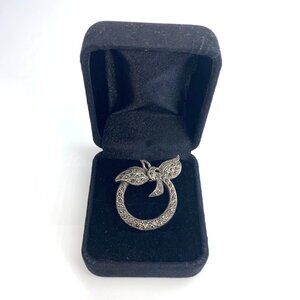 Wreath Brooch Silver Antiqued Women Floral