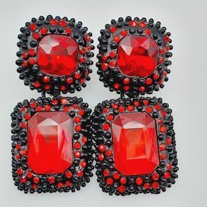 "New Rectangle Red Big Bright Pendant Dangle Earring,