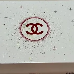 -Chanel Cosmetic Bag with Gold Metal Chanel Logo on bag front & zip
