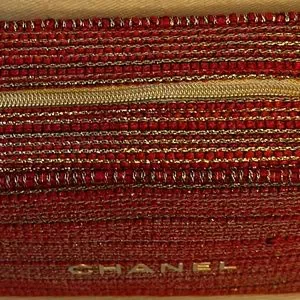 CHANEL NEW ELEGANT LIMITED EDITION RED TWEED COSMETIC BAG added unbranded REMOVABLE RED & GOLD STRAP