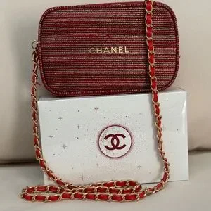 CHANEL NEW RED COSMETIC BAG with added unbranded CROSSBODY STRAP♥️FREE SHIPPING