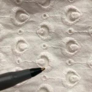 Beautiful black embroidery on layered bell sleeves. Cotton eyelet off the shoulder elastic neck with soft jersey underlining.