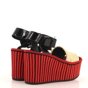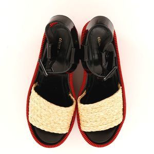 Celine Women's Ankle Strap Wedge Platform Sandals Straw and Patent