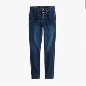 Madewell 9" High-Rise Skinny Jeans: Button-Front Edition size 25 Petite. Lightly used with little to no wear and no damage. Dark wash. Lean and legs-for-days sexy, these 9" mid-rise skinny jeans come in a deep indigo with a broken-in vibe.