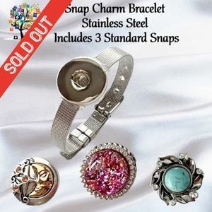 Snap Charm Bracelet Stainless Steel Includes 3 Standard Size Snaps Shown Adjusta