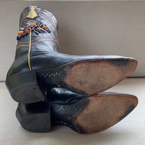 Larry Mahan Rare Vintage Aztec Beaded Fringe Black Leather Cowboy Western Boots