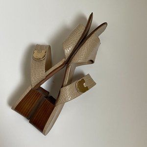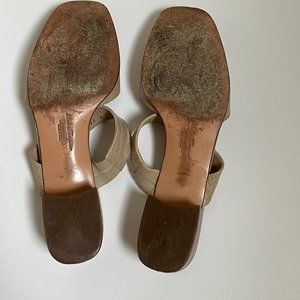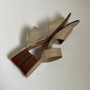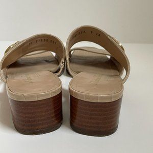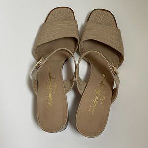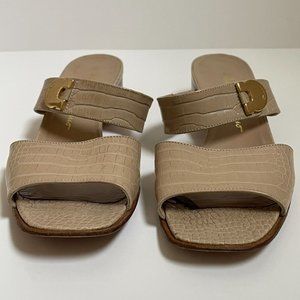 Salvatore Ferragamo Nude Leather Crocodile Embossed Slide Sandals Low Heel Sz 9